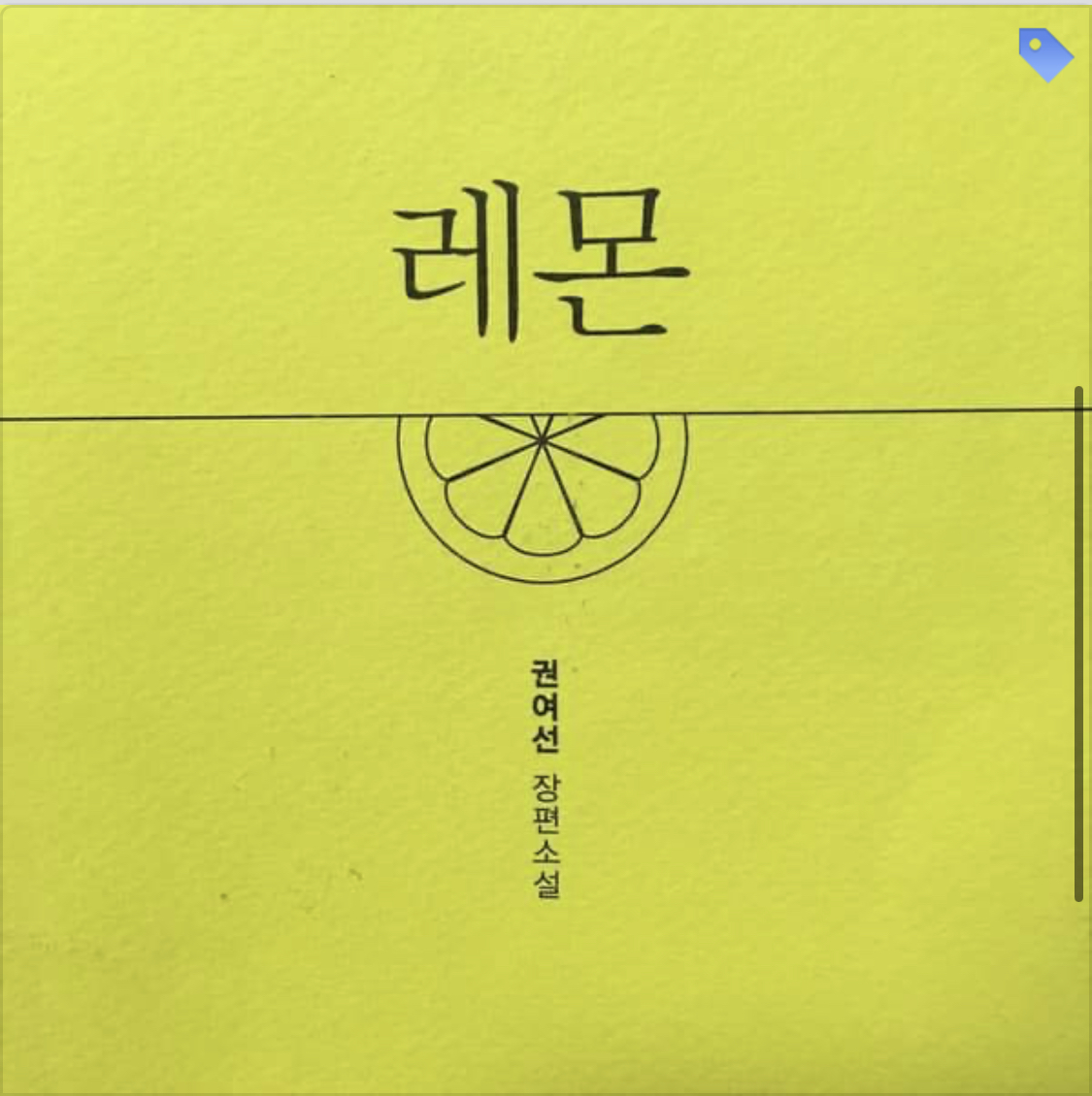 #창비 #권여선 #레몬 가제본을 받았다. 샛노란 표지와 제목.