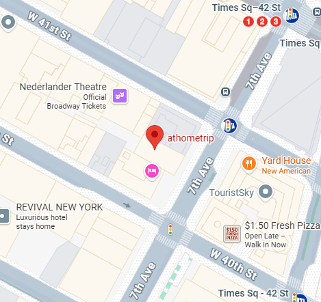 앳홈트립 사무실은 맨해튼 타임스퀘어 근방에 있다. 7th ave. btw 40th and 41st st.굉장히 중심부지만, 사무실은 정말 작기 때문에 찾기에 아주 쉽진 않다. 그 번지수의 건물 출입구가 정말 좁다랗다. 좁다란 문으로 들어가서 좁다란 복도 안에 있는 좁다란 엘리베이터를 타고 7층으로 올라가면 사무실이 나온다.