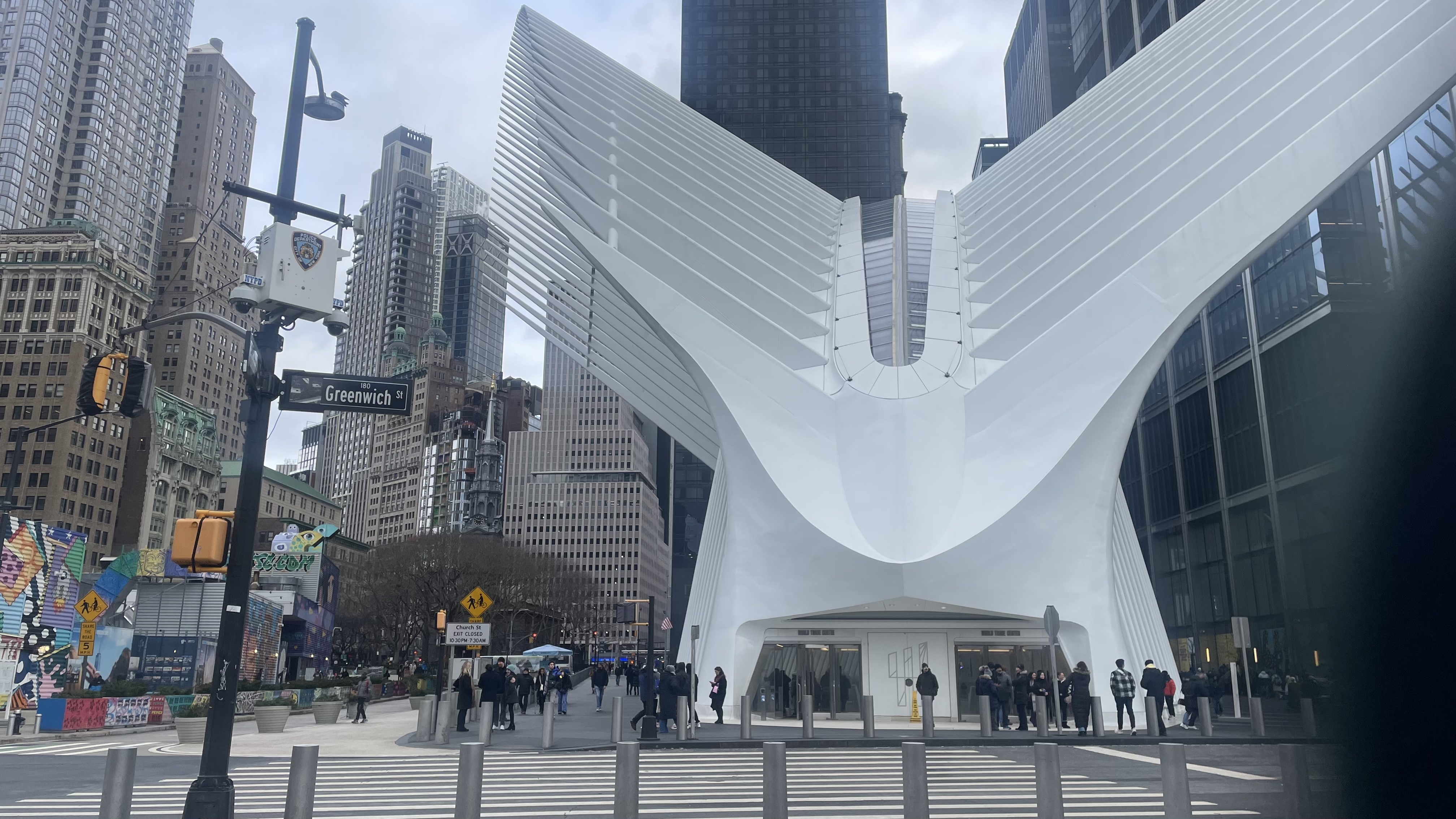 중앙에 타원형같은 건물이 Oculus다. 오큘러스도 WTC(world trade center) 중 하나다. 그 바로 앞의 빨간 점이 지하철역 표시.